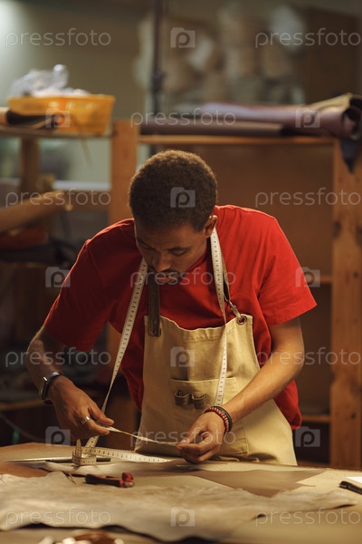 Измерение швейной ткани в портфельном магазине