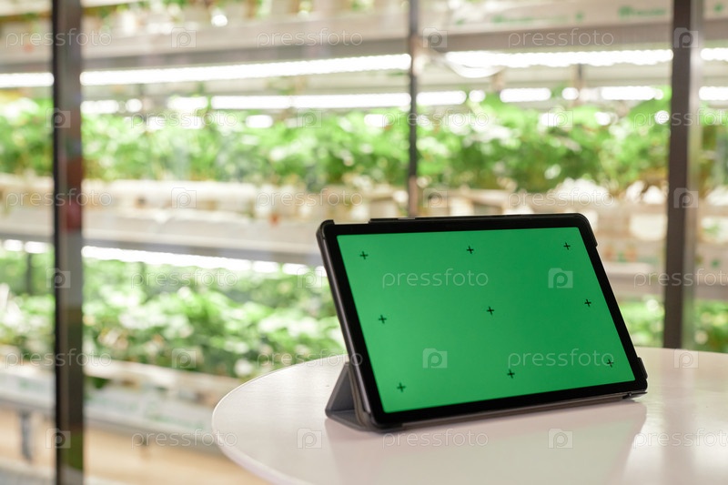 Таблет, отображающий зеленый экран в настройках внутренних плантаций