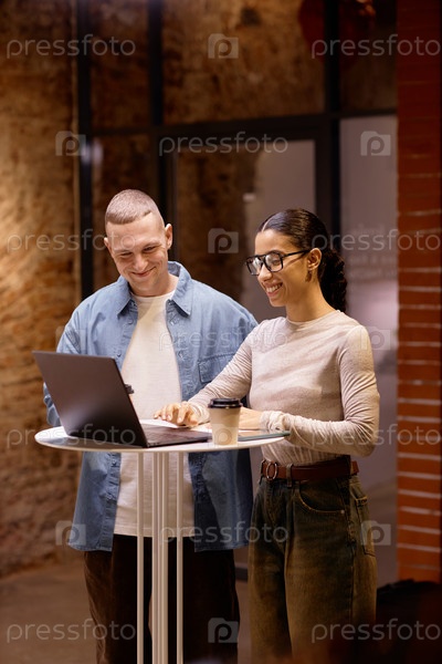 Сотрудничество над проектом с ноутбуком в офисной обстановке