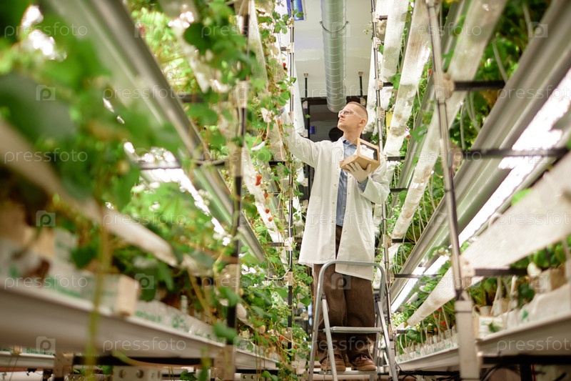 Ученый, проводящий исследования в гидропонной лаборатории