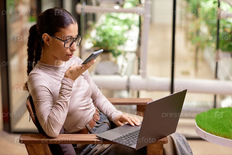 Использование телефона во время работы на ноутбуке в городском офисе