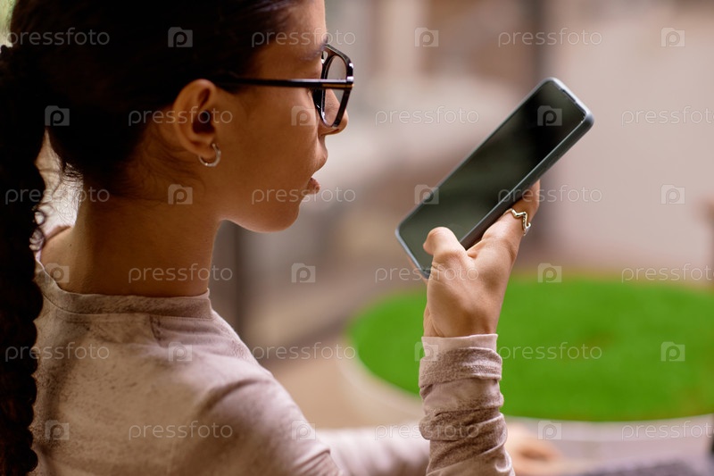 Молодая женщина использует смартфон для обмена сообщениями снаружи