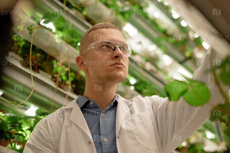 Ученый, изучающий растения в лабораторной среде