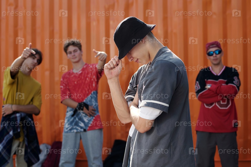 Жестикуляционная группа молодежи в повседневных нарядах