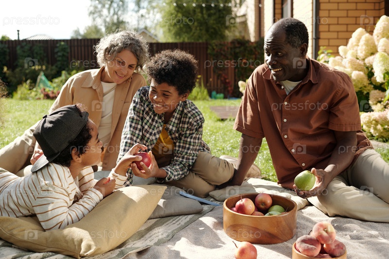Наслаждаясь солнечным днем пикника со свежими фруктами