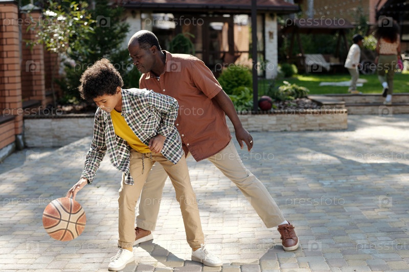 Играет в баскетбол снаружи с афроамериканской женщиной