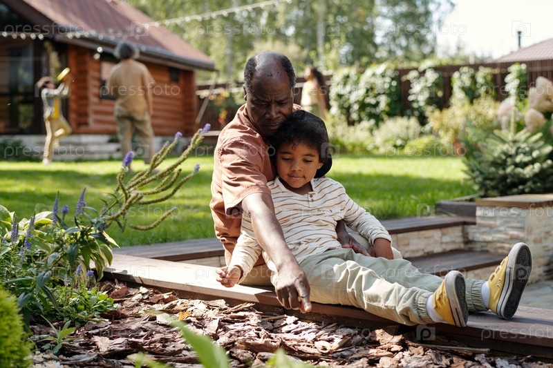 Проводить время с дедушкой в саду на заднем дворе
