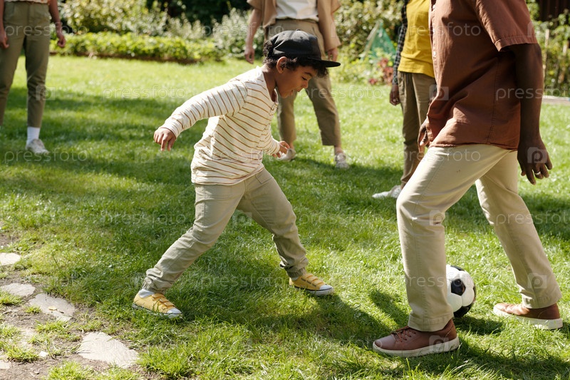 Дети играют в футбол в Грин-парке