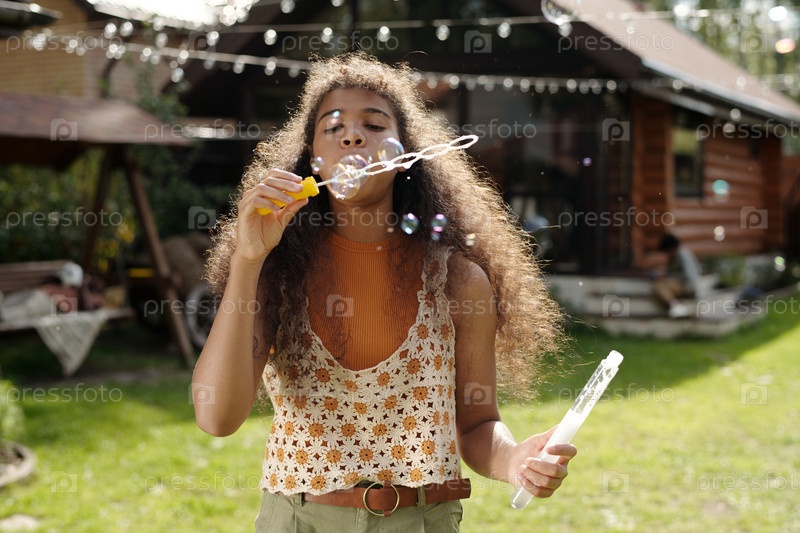 Пушистые пузыри на открытом воздухе в летнем саду