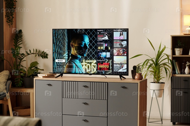 Смотреть видео на современном плоском экране телевизора в уютной гостиной