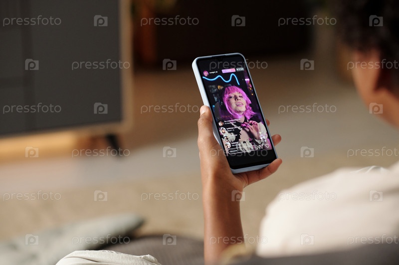 Человек, использующий смартфон для просмотра видеопотока