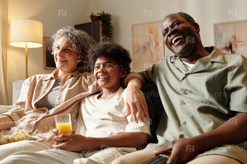 Улыбающаяся семья из трех человек наслаждается временем вместе дома
