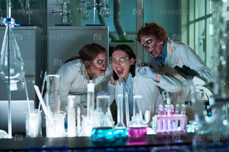 Молодые работники лаборатории играют в шутки с коллегами на Хэллоуин
