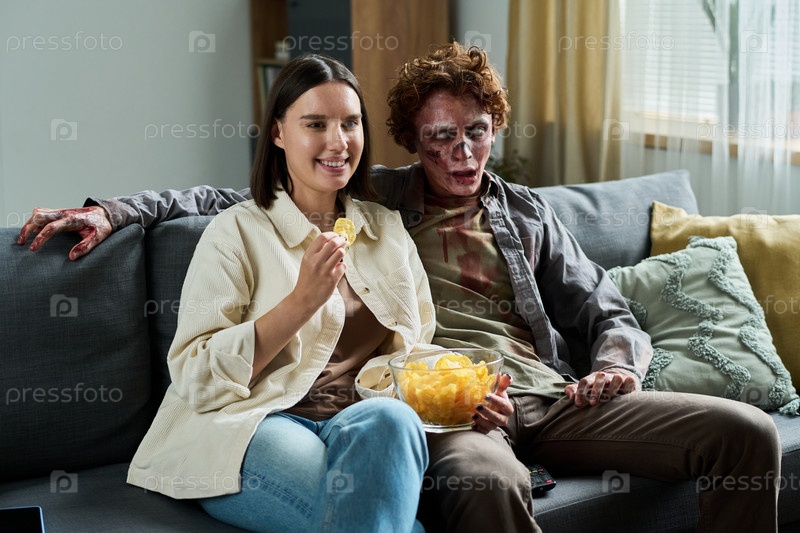 Женщина и ее зомби-подруга смотрят фильм в гостиной