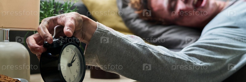 Молодой мужской мертвец выключает будильник Header