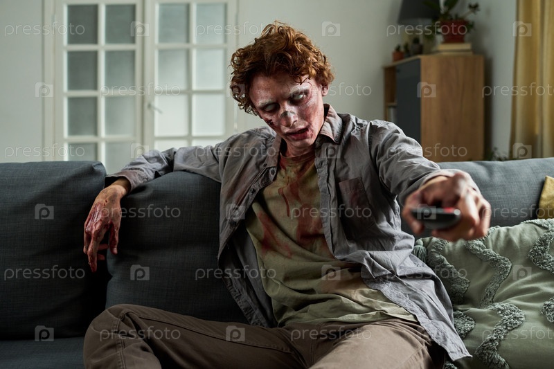 Ужасный мужской зомби, выбирающий телевизионное шоу