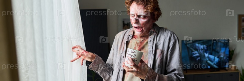 Странный зомби, глядящий из окна