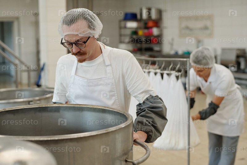 Проверка большого вата смешивания из нержавеющей стали в кухонной мастерской