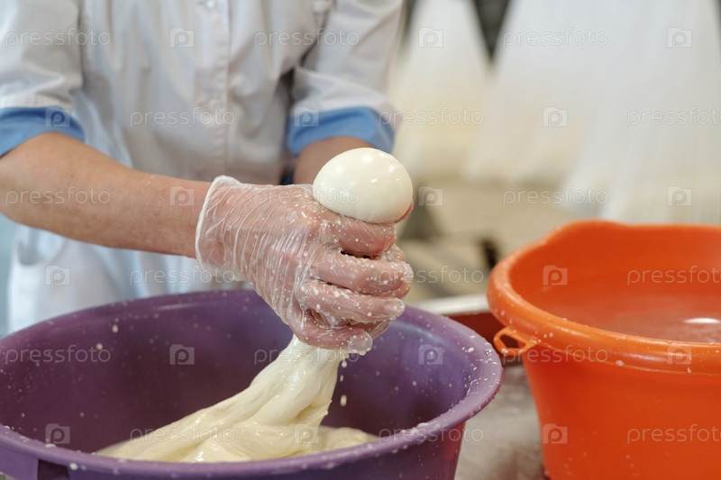 Приготовление свежего сыра моцарелла вручную на кухне