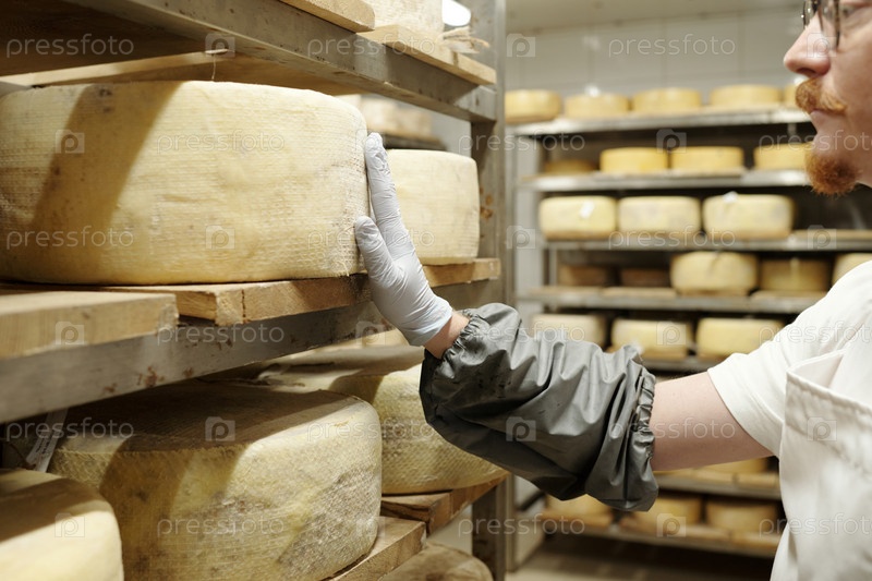Проверка сырных колес в комнате для старения