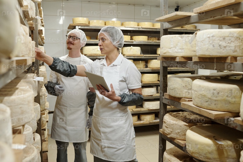 Инспектирование старения сыра в профессиональном молочном заводе