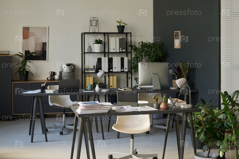 Столы коллег в современном офисе