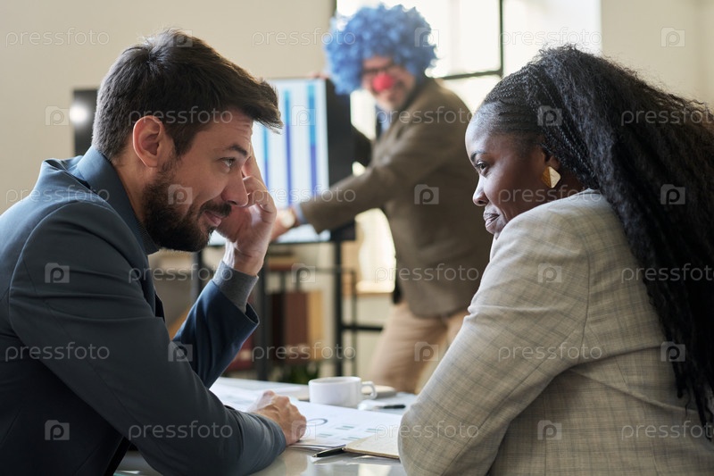Коллеги смеются над боссом-клоуном