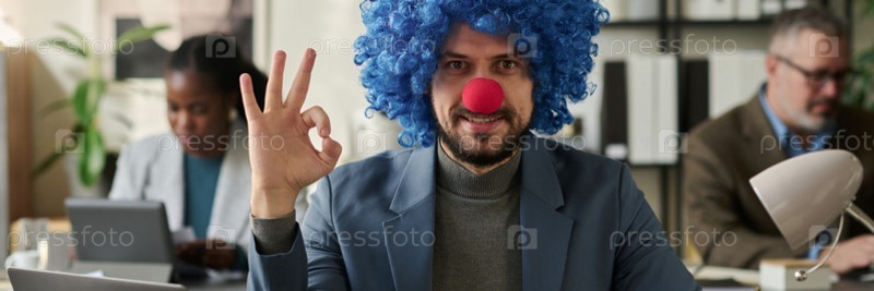 Молодой улыбающийся клоун - мужской сотрудник