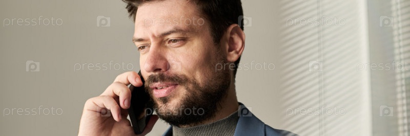 Мужской менеджер со смартфоном на ухо
