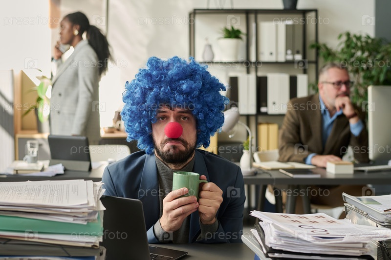 Молодая несчастная клоуна, офисный работник