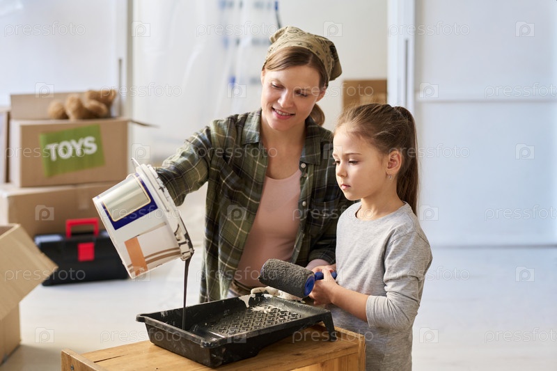 Наливать серую краску в пластиковую поднос