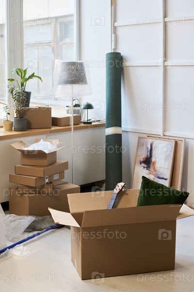 Картонная коробка с гитарой и подушкой