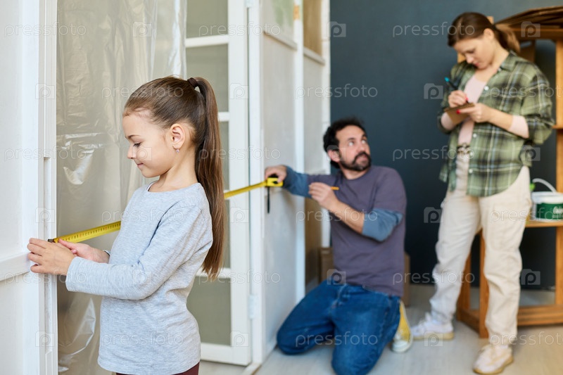 Девушка помогает родителям с ремонтом
