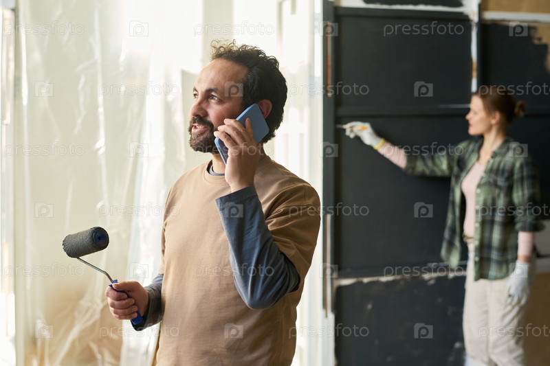 Мужчина с обезболивающим, разговаривающий по телефону