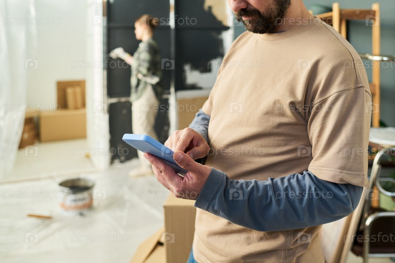 Человек, указывающий на экран смартфона