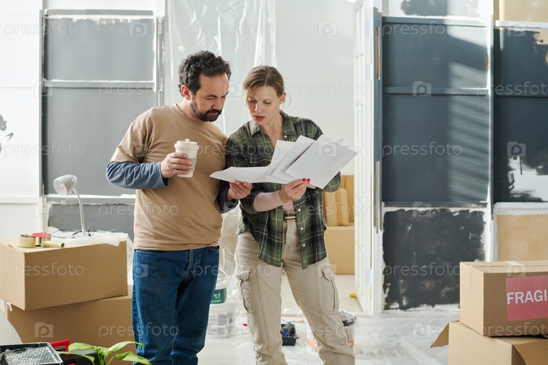 Пара обсуждает эскизы интерьера