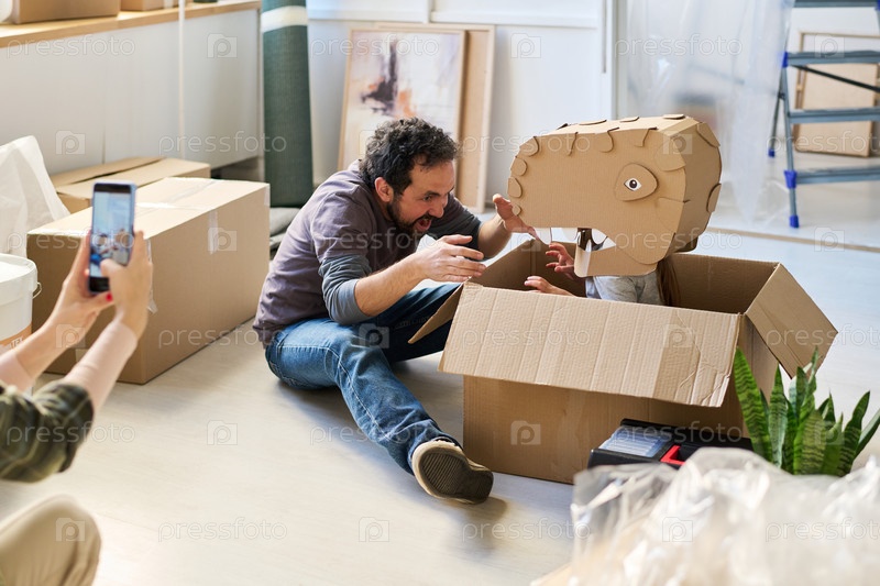 Игра с ребенком в маске динозавра