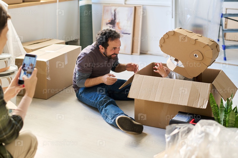 Отец играет в динозавра с дочерью