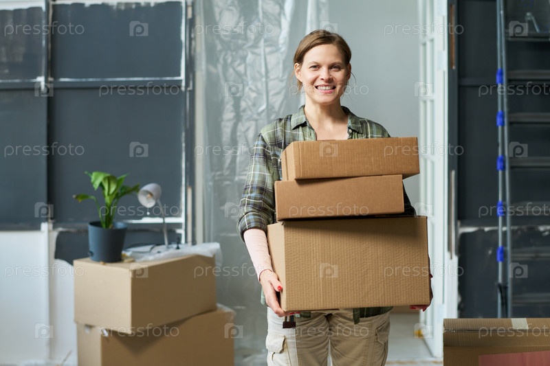 Ходить с коробками вдоль домашней комнаты