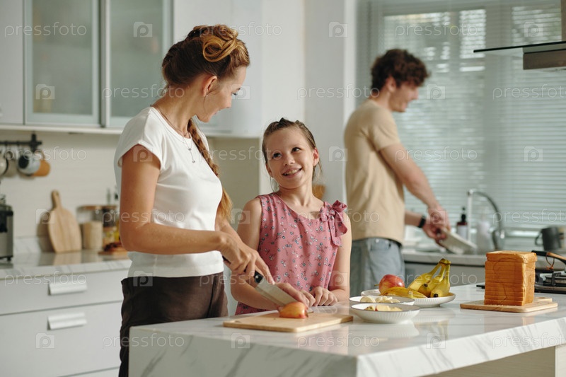 Семья готовит вместе на кухне