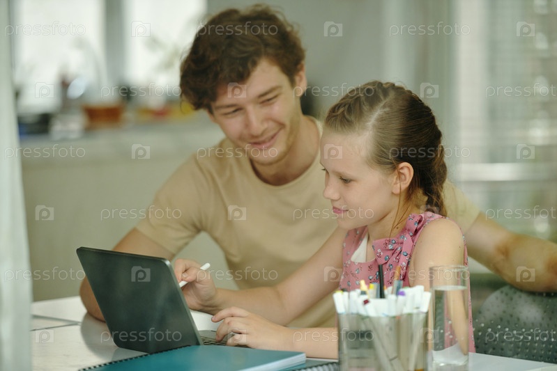 Девушка делает домашнее задание онлайн с учительницей