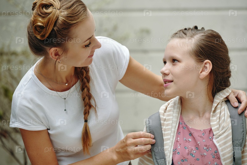 Мама, готовящая дочь к школе