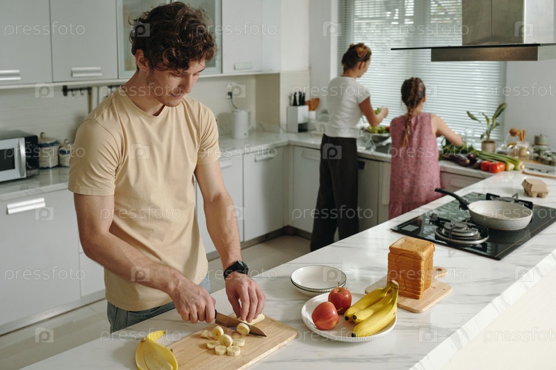Папа готовит завтрак для своей семьи