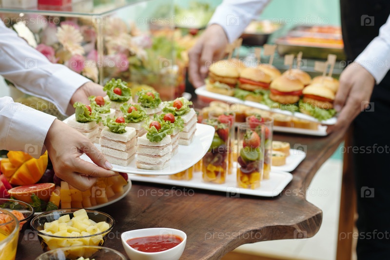 Устройство красочного буфетного пира с различными блюдами