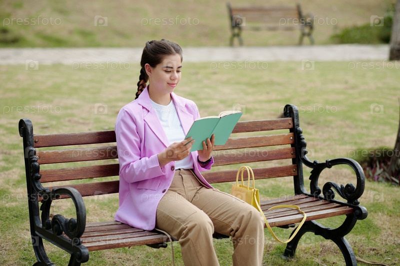 Девочка, читающая книгу в парке