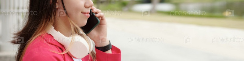 Девушка разговаривает по мобильному телефону на улице