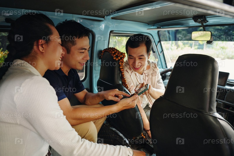 Друзья, использующие смартфон во время путешествий