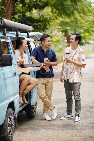 Счастливые друзья, путешествующие летом