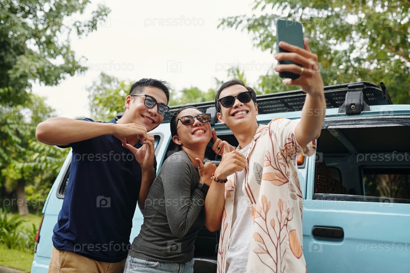 Друзья делают селфи-портрет во время путешествия
