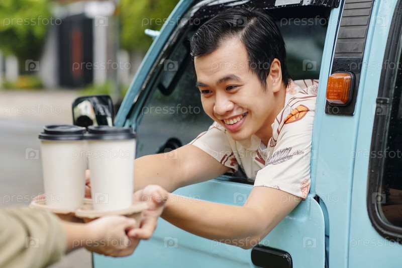 Buying Take Out Coffee Man Покупая кофе с доставкой